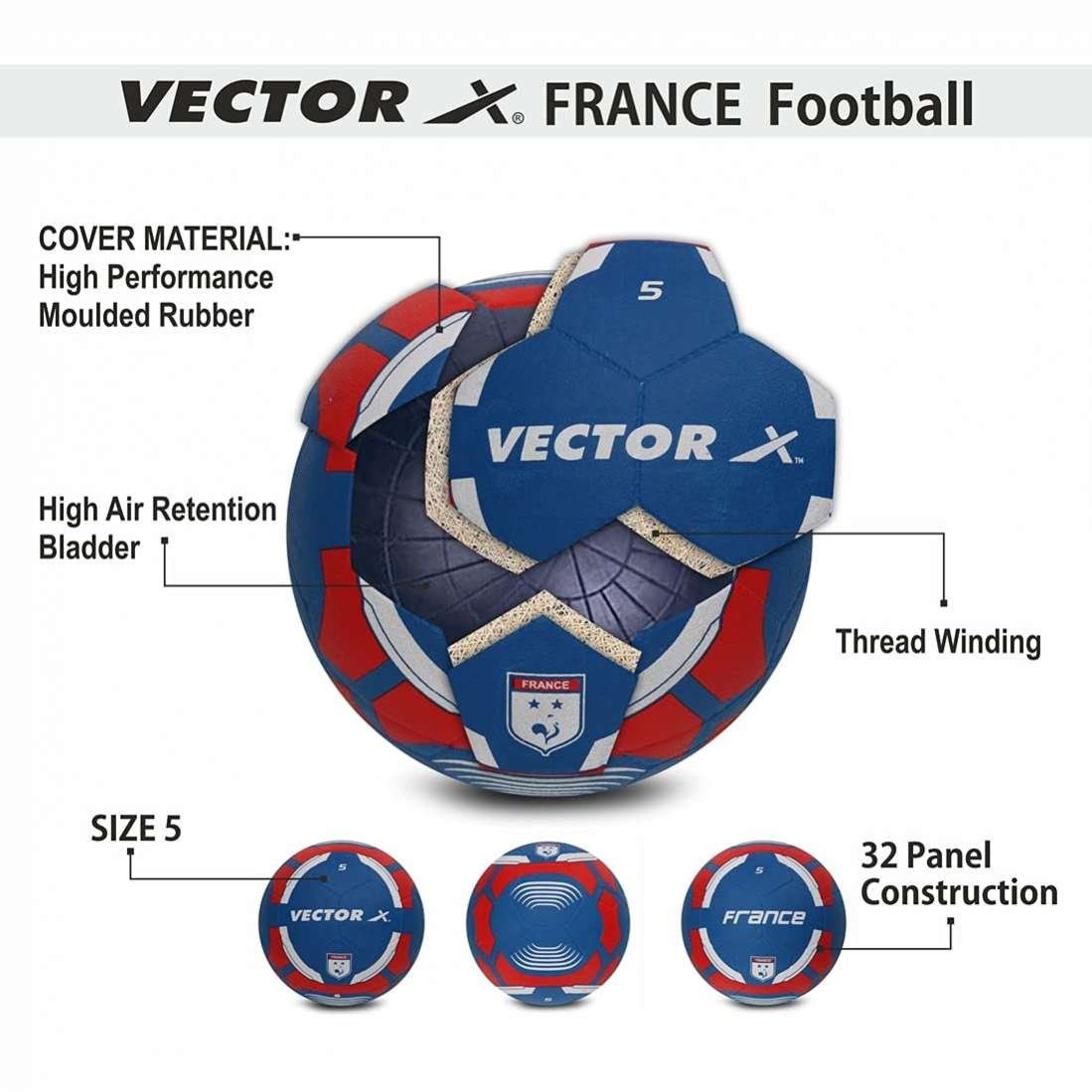 Sport Soccer Colour France Material Compounded Rubber Item Diameter 22 Centimetres Brand Vector X About this item Rubberized moulded ball, Texture surface single piece rubber moulded 32-panel ball. Excellent for hard & rough surface High durability. Excels in all weather conditions. Weight – 400 – 450 gms, Circumference – 69.00 – 70.00 CM, Diameter – 22.00 Cm.