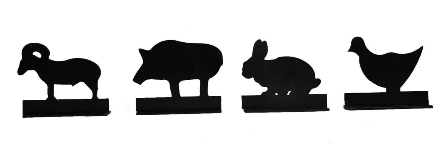 About this item Black Poweder Coating 3/16” thickness 4 Animal-Shaped Metal Targets, (Rabbit / Bird / Boar / Goat ) Make in INDIA Suitable for 10 m Air guns and Above Target Practice