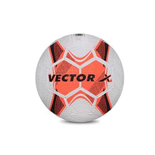 Sport Soccer Colour White-Orange Material Synthetic; Item Diameter 22 Centimetres Brand Vector X About this item Rubberized moulded ball Excellent for hard & rough surface Weight – 400 – 450 gms, Circumference – 69.00 – 70.00 CM, Diameter – 22.00 Cm. Size : 5 Instructions : Inflate 4-5 PSI and Insert Needle Vertically